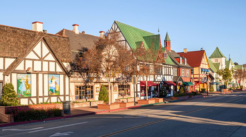 Founded in 1911 by Danish immigrants seeking to preserve their heritage, Solvang has maintained its authentic European character for over a century. The town’s cobblestone streets are lined with traditional Danish bakeries, boutique shops, and restaurants serving everything from aebleskiver (Danish pancake balls) to locally-sourced California cuisine. With over 120 wineries in the surrounding Santa Ynez Valley, Solvang perfectly blends Danish culture with California’s renowned wine country.