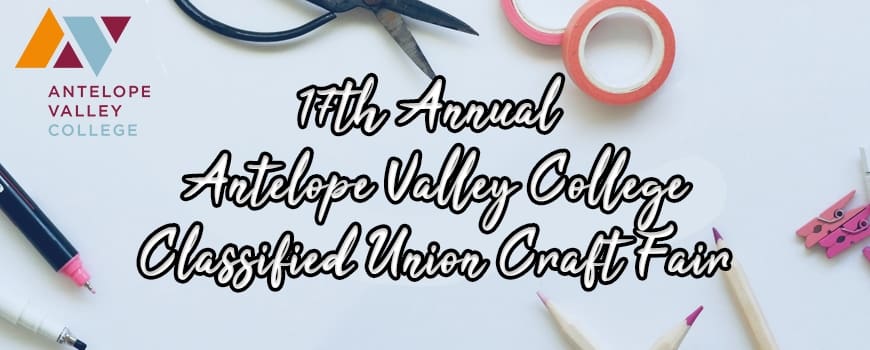 The free, yearly Antelope Valley College Classified Union Craft Fair will take place in and around the AVC Cafeteria on Saturday, November 9, 2019 from 9am-3pm. This event will take place rain or shine. Handmade crafts for sale include jewelry, home decor, knitted and crocheted items, and woodworking. Event proceeds support the Antelope Valley College Federation of Classified Employees Scholarship Fund.