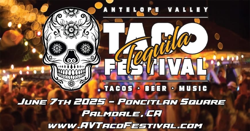 2025 AV Taco Festival will take place on Saturday, June 7th from 11am to 8pm, in Palmdale, at Poncitlan Square, in downtown Palmdale.