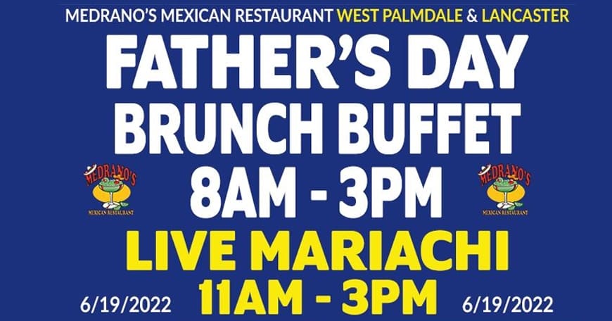 Join Medrano’s for their annual all you can eat Father’s Day Buffet with live Mariachi music! Tacos, Enchiladas, Fajitas, Fresh Tortillas, Champagne, Mimosas & more!