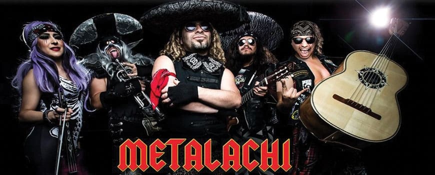 Born in Juarez, Mexico and raised in East L.A., Metalachi is four brothers and a sister: Vega de la Rockha, El Cucuy, “Queen” Kyla Vera, Paco Halen, Nacho Picante and Warren Moscow. Get ready for your heavy metal favorites — from Led Zeppelin to Ozzy to Guns & Roses — a la Mariachi!