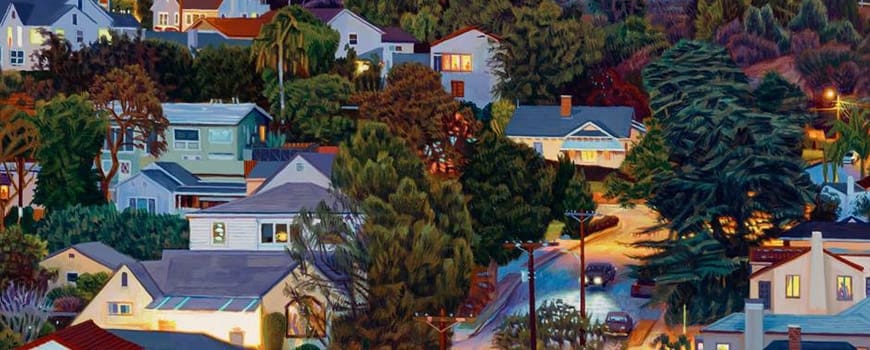 Seth Armstrong creates paintings that arrest a sense of time. Some offer expansive views and others a contracted intimacy, moving freely in and out of public and private spaces to create intersecting narratives. Known for paintings that self-consciously capture the act of looking – whether as a voyeur in trespass or a participant in the landscape – Armstrong apprehends the simultaneity of the city as a place of endless, contingent narratives, jarring interruptions and suspenseful pauses.