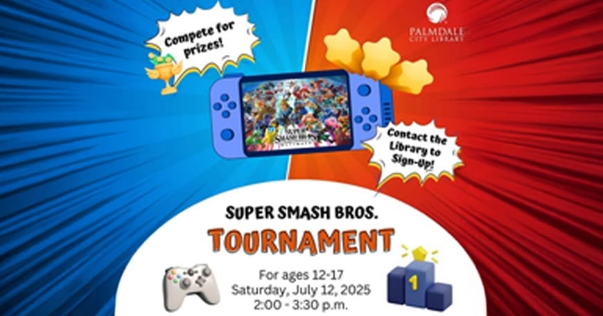 Join us for a Super Smash Bros Tournament at the library. Test your Smash skills for a chance to win a prize! For teens 12-17. Contact the library to reserve your spot. Registration closes Friday, July 11th.