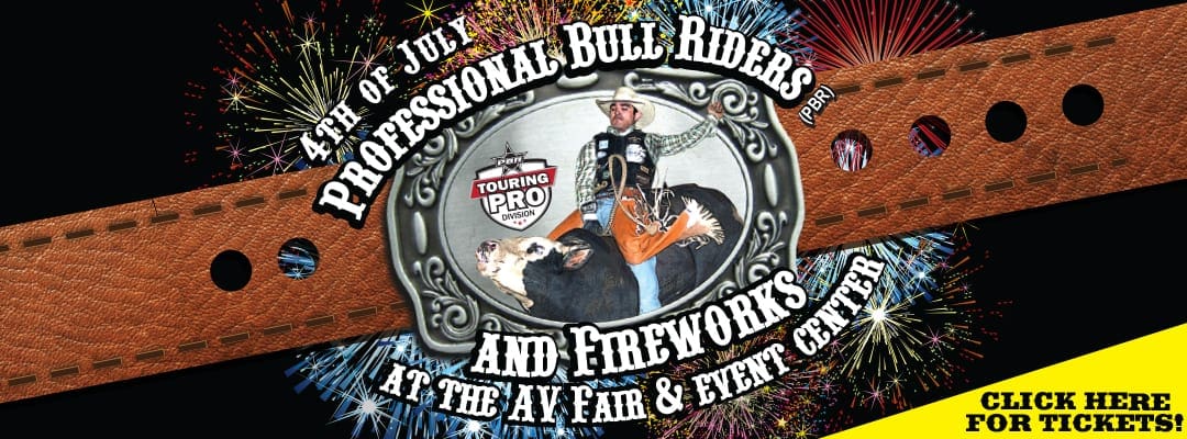 PBR Tickets are on sale now at www.avfair.com. Tickets start at just $15.00. All purchased PBR tickets include reserved seating to the fireworks show. Parking is just $5.00 per car. Chairs and blankets for non – grandstand fireworks viewing areas are encouraged. Outside Alcohol, BBQs and pets are prohibited.